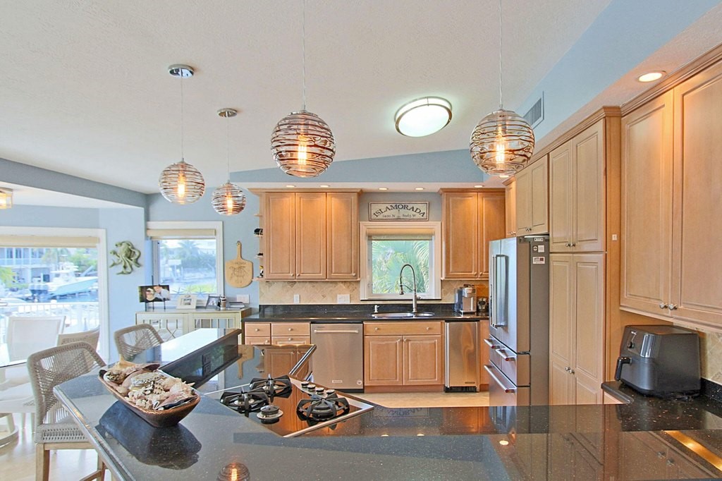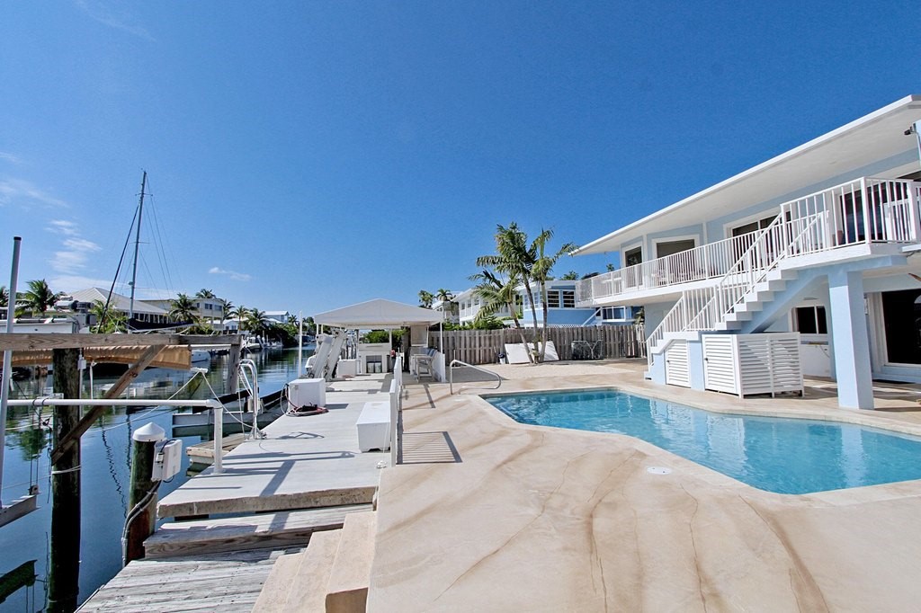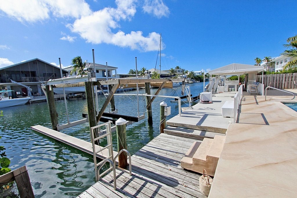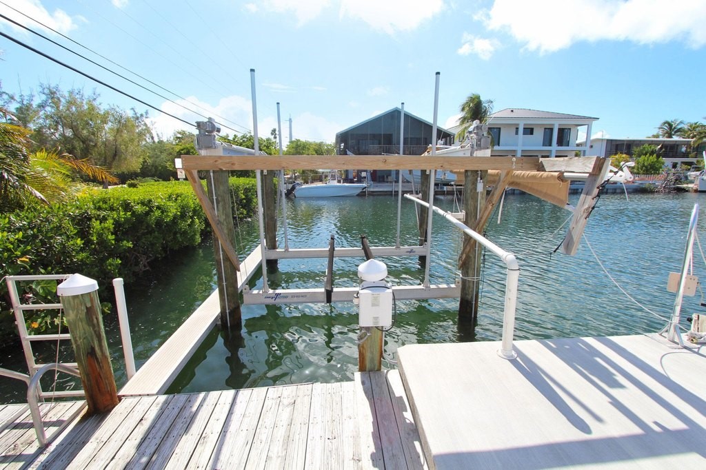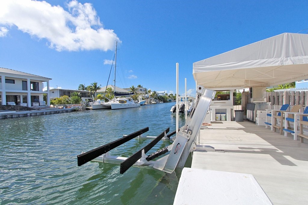 Fisherman''s Dream! Venetian Shores Waterfront 3/3 Concrete Home with Concrete Roof and 70 ft. Dock, all set up and ready for fishing! Boaters will appreciate the 24, 000 lb. elevator boat lift plus a four-post 13, 000 lb. cradle boat lift with roller shade on the other side. Also on the dock is the coolest fish cleaning station in the Keys with water, power and a large ice maker all protected under an oversized canvas shade. There are also two large bait freezers under the house and a storage closet for your boating gear. If this wasn''t enough, Venetian Shores is also Islamorada''s premier boating community, with 100 ft. wide canals that offer immediate access directly to both the Atlantic Ocean AND Florida Bay just minutes away via Snake Creek Channel. The channel is open to the bay and has a drawbridge on the ocean side for tall ships. This home is not only set up perfectly for fishing, but also for company or extended family with a roomy open floor plan upstairs with 2 beds/2 baths and a separate 1 bed/1 bath apartment downstairs with its own kitchenette and living room/extra bunk room. Upstairs is a nicely updated kitchen with gas cooktop and large pantry, two updated baths, two bedrooms with large closets, laundry and a wide back porch. Downstairs is the private apartment, garage and carport, plus a storage room for rods and tackle. The fenced backyard offers a freshly refinished, heated/chilled pool with a unique custom pool deck overlooking the canal. Both the front and back yards are lushly landscaped with tropical plants and trees for shade and privacy. This corner lot property also benefits from having no neighbors on one side and additional street frontage along with the flexibility of canal-end dockage, There is also an exterior cargo lift in back to easily move large or heavy items upstairs. This home is ''above flood'' and has a concrete roof plus all impact windows and doors for the lowest insurance rates. Must see!